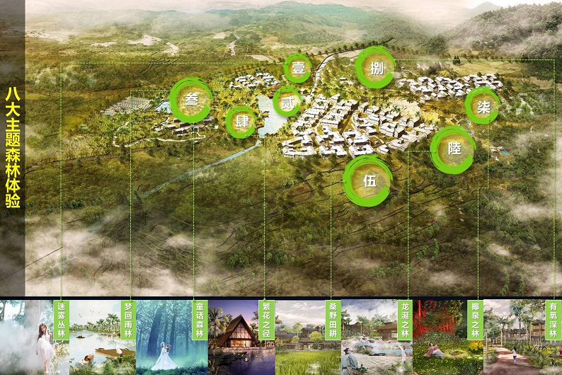 四大旅游主題片區分別為“龍靈之森初現”、“繁花深徑誤入”、“桑田綠野踏逐”、“沐涎林中忘返”,包含“迷霧叢林”、“夢回雨林”、“童話森林”、“繁花之徑”、“桑野田耕”、“龍涎之林”、“椰泉之林”、“有氧深林”八大體驗區。