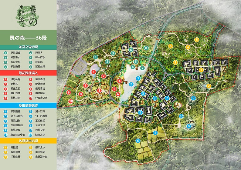 仁園·愛之森按照傳說故事的敘述走向,在規劃設計中分為四大旅游主題片區,包含八大體驗區,共有36個獨立景觀……